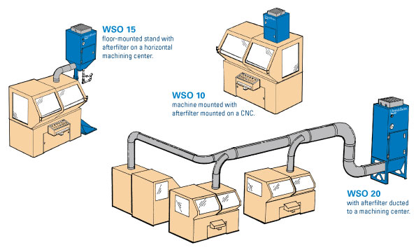 WSO油霧過濾器可以滿足各種設(shè)備的配置要求:可安裝在機(jī)頂上、地面上或連接中央管道系統(tǒng)。